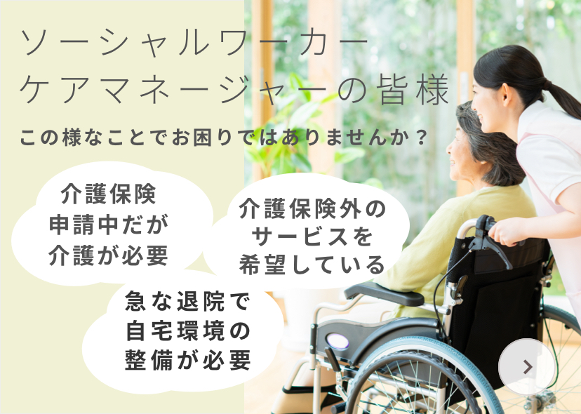 介護保険でまかないきれない部分のご依頼から24時間介護まで様々なサービスをご利用いただくことが可能です。