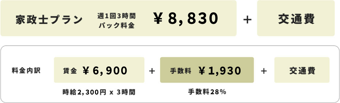 家政婦(ハウスキーパー)が水回り・居室のお掃除、お料理、お買い物など、家事全般を幅広く行います。