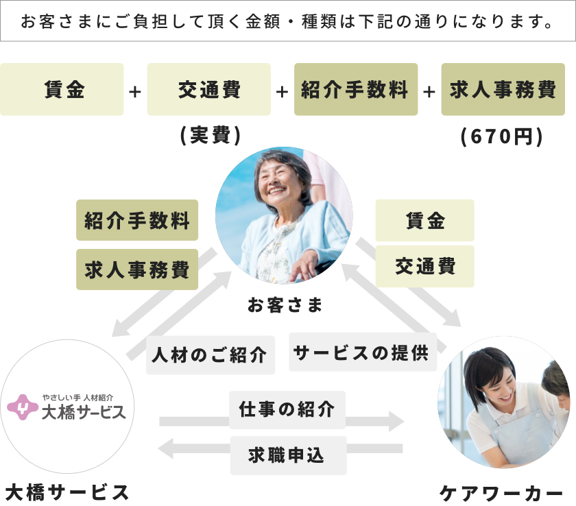 大橋サービスは毎日の介護から一日だけのご利用まで幅広く介護のお仕事を承ることができます。お気軽にお問い合わせください。お客様の介護度・生活環境によって様々なシーンがございます。大橋サービスではお客様のニーズによってどのようなサービスが良いのかコーディーネーターがしっかりヒアリングを行い適切なサービスのご提案を行います。