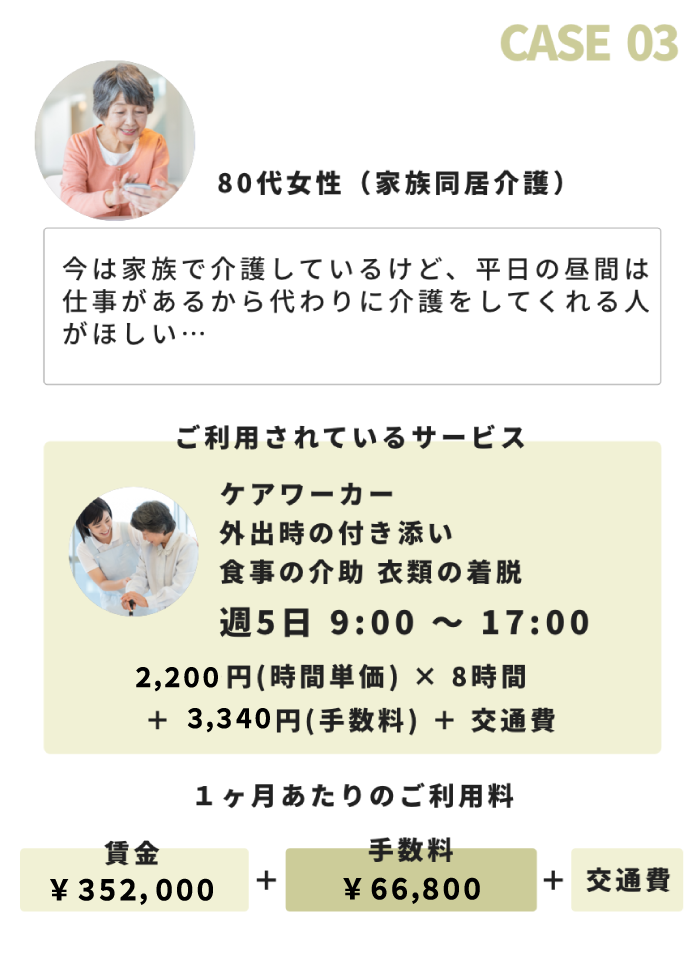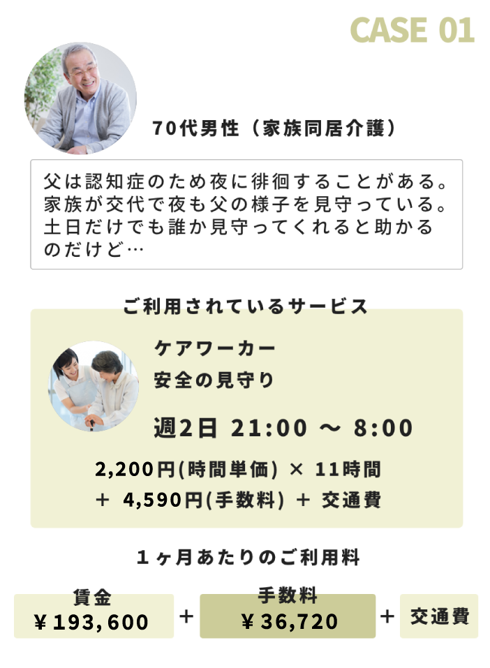 ※ ご本人様以外に関する介護や家事を希望される場合は、基本賃金の25%割増となります。